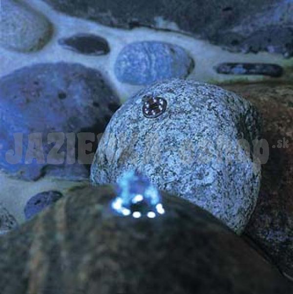 Osvetlenie vhodné na osadenie do prevŕtaných okrasných kameňov a pramenných kameňov. Fotobunka pri stmievaní automaticky zapína svietiace diódy (intenzita 720 luxov). Technické parametre: Rozmer: 30 x 70 mm Napätie: 12V Príkon: 2 W Počet svietiacich diód: 6 Dĺžka kábla: 10 m Váha: 0,3 kg Záruka: 2 roky
